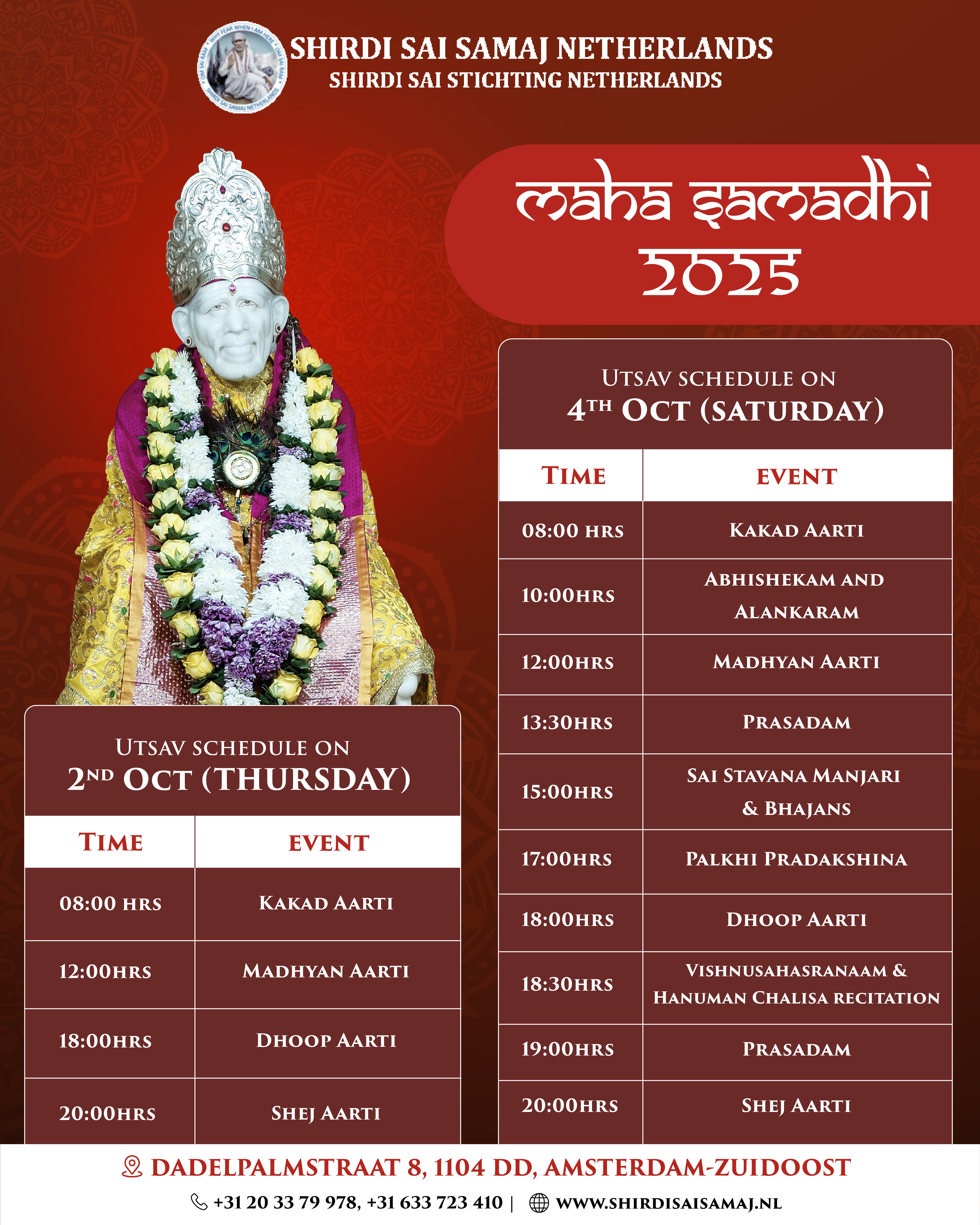 Shri Sai Punyathithi (Mahasamadhi day) 2nd Oct 2025 and 4th Oct 2025.